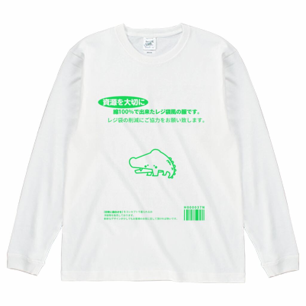 [送料無料]おもしろロンT レジ袋!?わに?Ver 白 メンズ レディース 綿100%