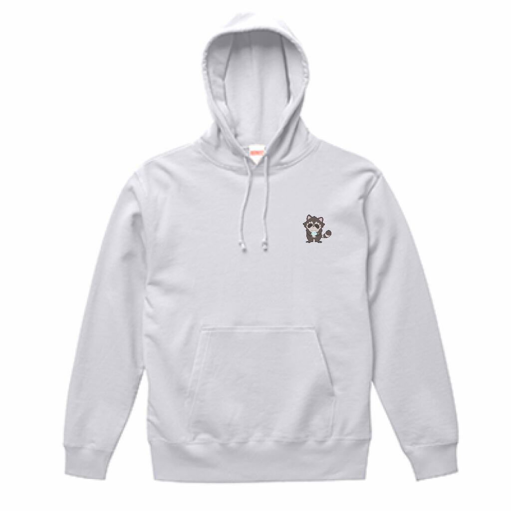 おもしろパーカー 手アライグマ 前面プリント 白 メンズ レディース プルオーバー